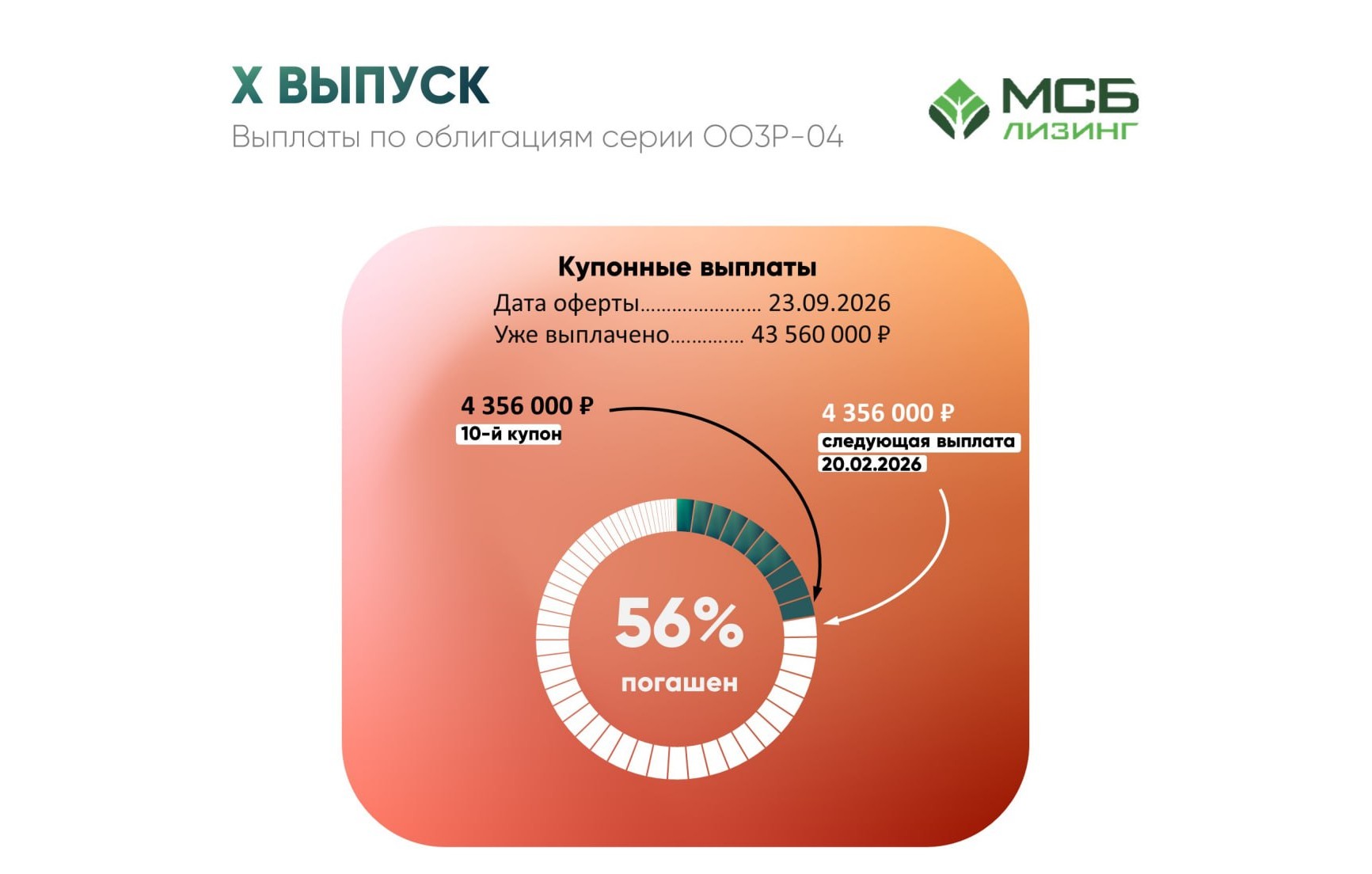 В августе 2025 года в рекордные сроки была размещена XII эмиссия облигаций 'МСБ-Лизинг' объемом 300 млн рублей.